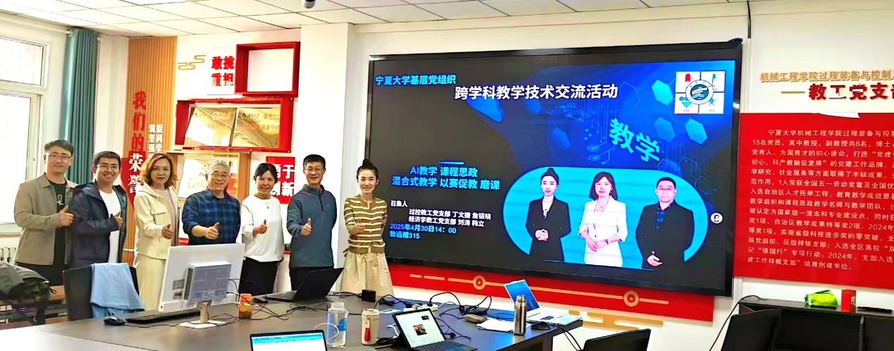 与过控系教工党支部的教师进行跨学科数字能力提升交流会,过控系教工党支部书记詹银晓邀请了丁文捷教授以及部分青年骨干教师参加了此次交流。