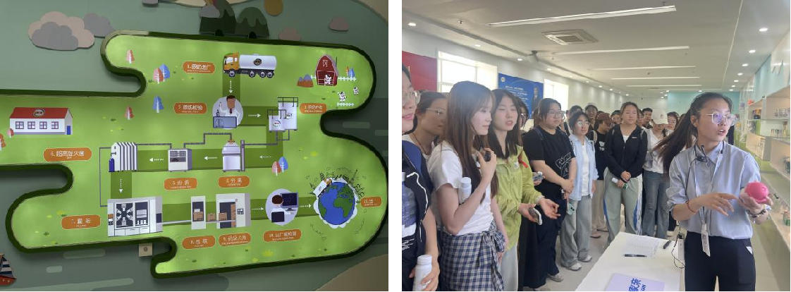 第一站,师生们来到了宁夏伊利乳业有限责任公司。宁夏伊利乳业是伊利集团在宁夏的唯一子公司,生产的产品涵盖集团的百亿级产品,如金典系列、安慕希系列、伊利牛奶系列、舒化奶系列、儿童奶系列、学生奶系列、黄油、淡奶油等九大系列、二十余个品类。自一二期项目投产至今,已实现液态奶日产能2400吨,日收奶量2800吨,年产超高温灭菌奶71万吨。2019年全年营收突破61亿元,收奶量突破105万吨。三期达产后,宁夏伊利日产能将达到4700吨,年销售收入突破100亿元,年均纳税额近2亿元,直接带动就业近3000人。在宁夏伊利,师生们还重点参观了企业党建文化长廊。长廊以“党建红”为底色,通过图文并茂的形式,展示了宁夏伊利在党组织建设、党员先锋岗设立、党建与业务融合等方面的工作成果。在党建引领下,宁夏伊利将党的领导融入公司治理结构,形成了“围绕生产抓党建,抓好党建促发展”的工作格局。