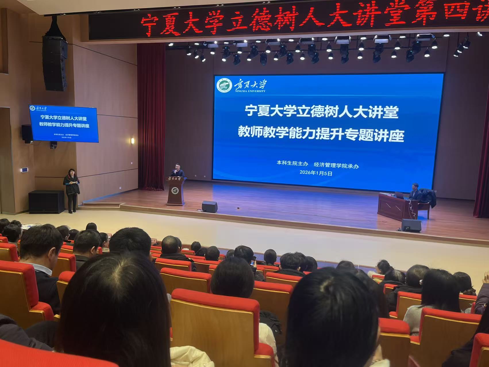 立德树人大讲堂第四讲。本次讲座特邀北方民族大学教师教学发展培训师、硕士生导师蒋亮做题为《人工智能在课程教学中的应用与实践》的专题报告。蒋亮老师作为国家级一流课程和省级课程思政示范课程负责人、教育部一流课程评审专家、超星智慧教学研究院特聘专家,先后荣获第三届全国高校教师教学创新大赛二等奖、国家民委青年教学标兵和省级课程思政教学名师称号,其教学课程案例入选首批全国高校智慧课程最佳案例和“新质·引领·赋能”首届数字教育示范标杆案例。讲座围绕教师数字素养提升、智慧课程建设、AI大模型及工具应用等前沿议题展开,吸引了来自全校各学院的数百名教师代表积极参与。