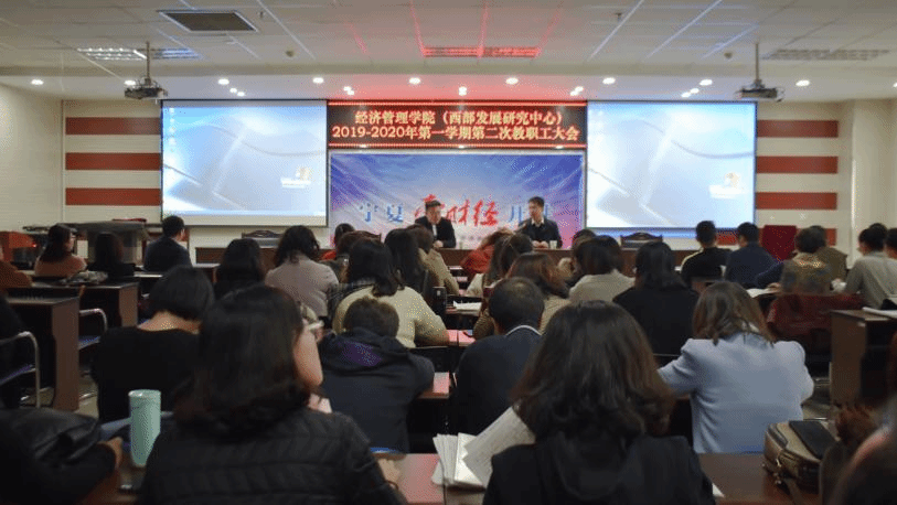 于贺兰山校区文荟楼316会议室举办了2019-2020年第一学期第二次教职工大会。院党委书记张桓、院长杨国涛、院党委副书记程胜利及麻将胡了2