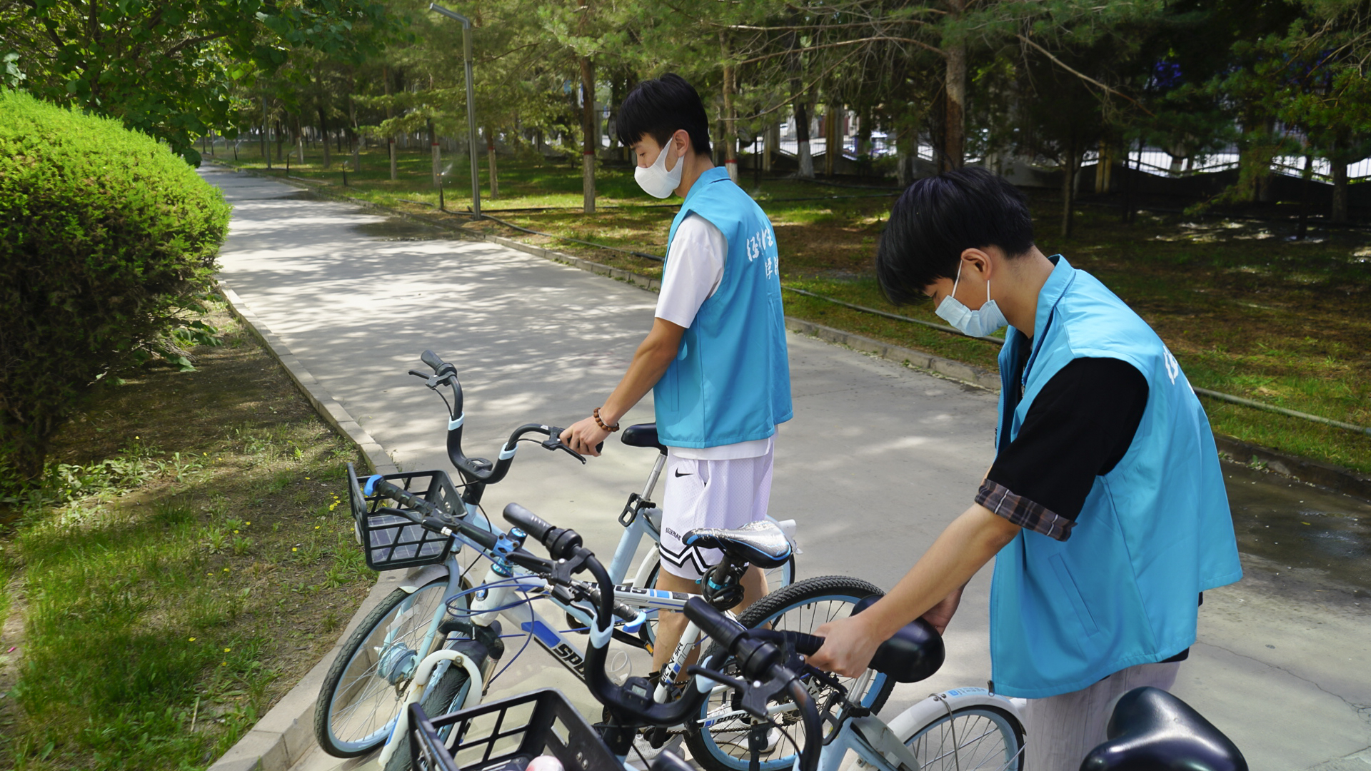 活动中,志愿者们分工明确,有条不紊,把倾倒的单车摆放整齐,擦拭干净,将乱停乱放的单车,搬放到规定位置。