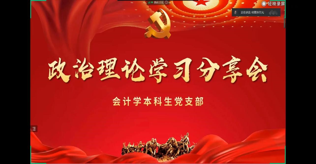 (西部发展研究院)政治理论学习分享会于线上顺利举行。会计学本科生党支部书记孙文元,会计学本科生党支部学生党员参加会议。会议由毕文静主持。
